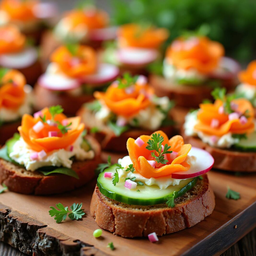 Ein kreatives Rezept für bunte Aperitif-Blümchen, ideal für Partys und Feste.