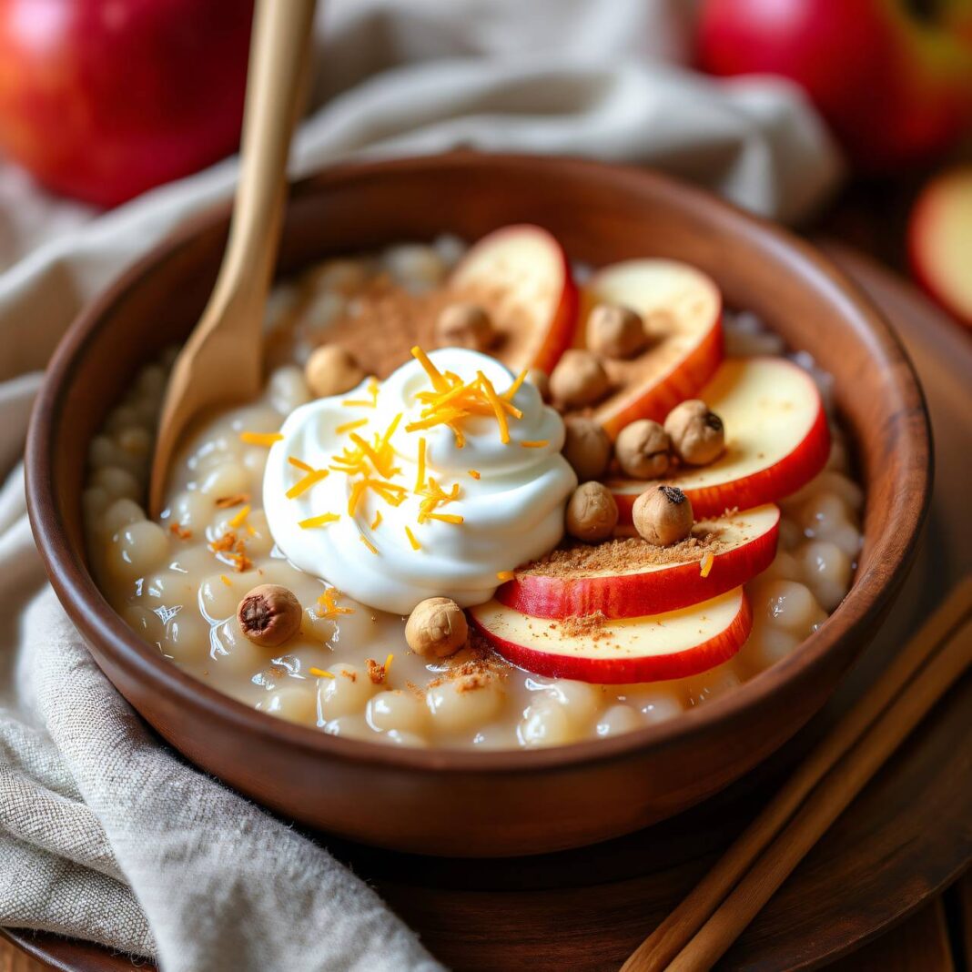 Ein köstliches Porridge mit Äpfeln und Zimt, perfekt für ein gesundes Frühstück.