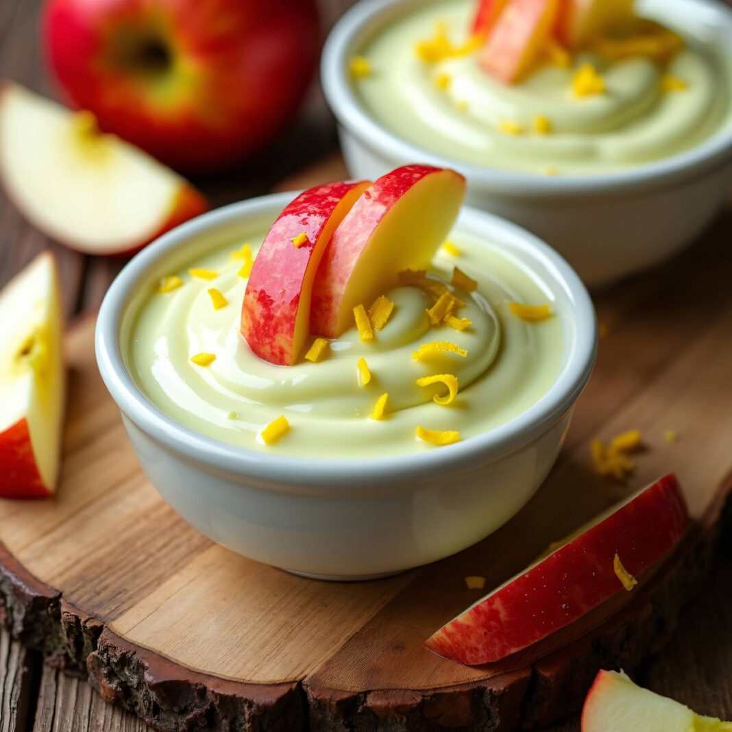 Eine köstliche Apfelcrème mit Holunderblütensirup, ideal als erfrischendes Dessert.