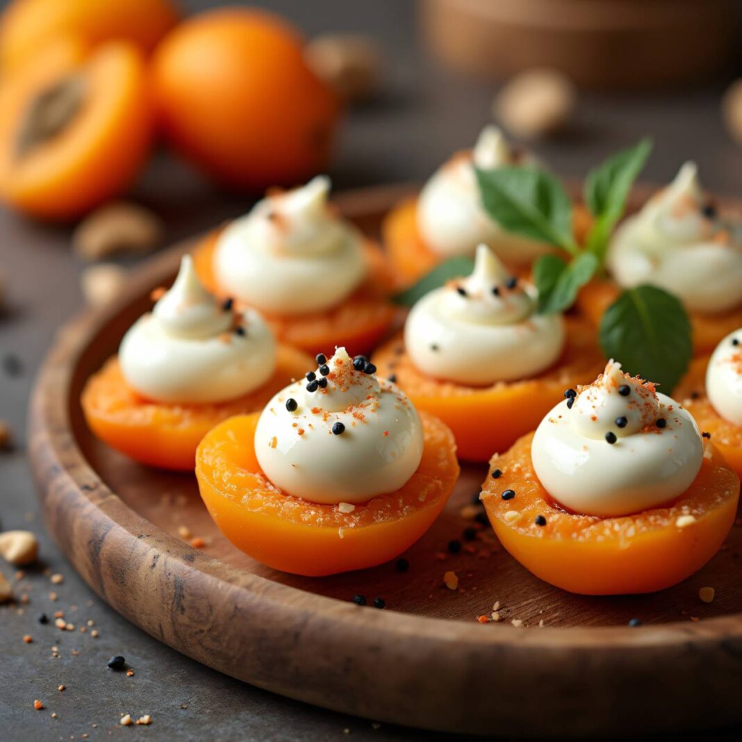 Leckere Low Carb Häppchen mit Frischkäse und getrockneten Marillen, ideal für einen gesunden Snack.