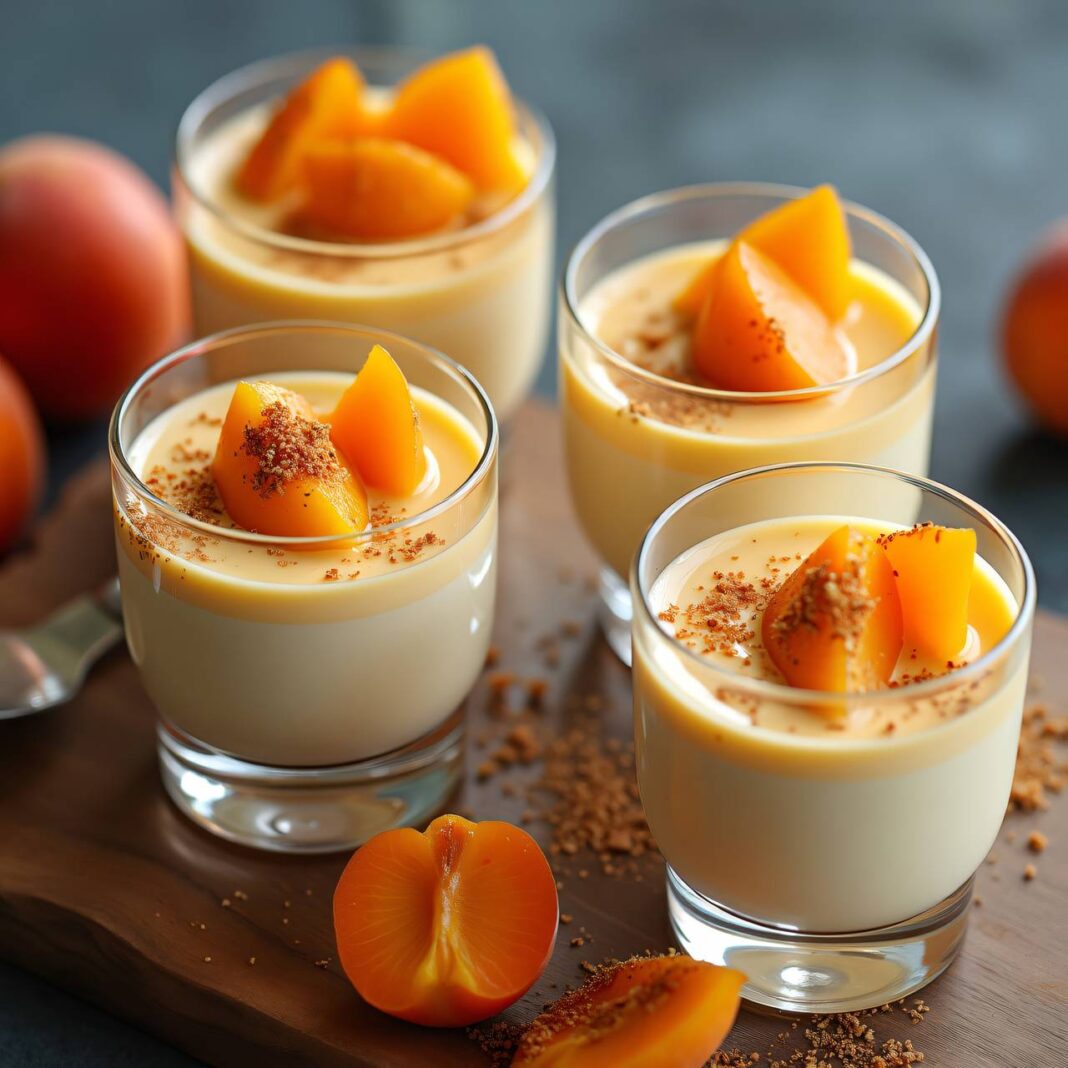 Ein köstliches Dessert aus Panna Cotta, verfeinert mit Aprikosen und einer süßen Garnitur.