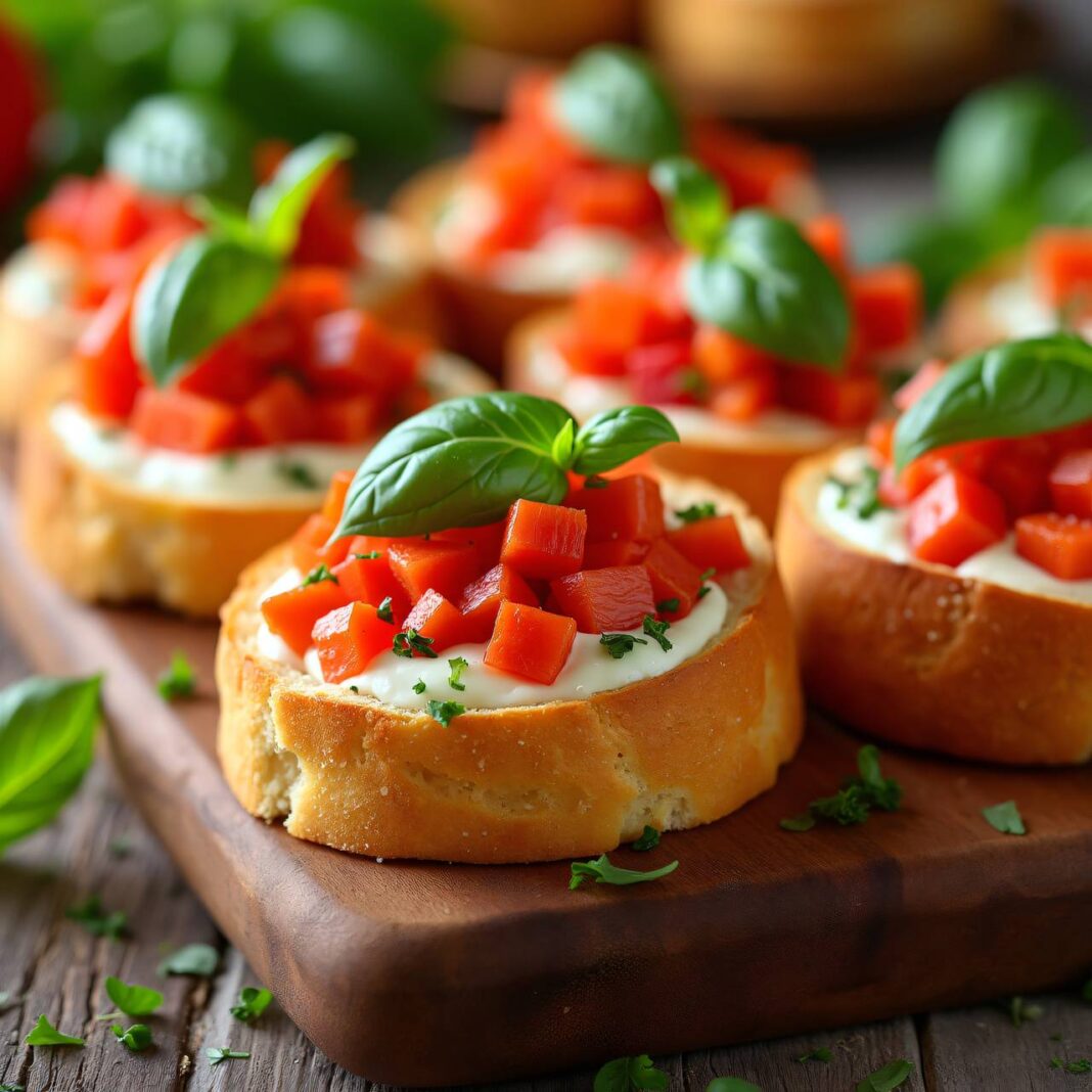 Genieße die Baguette-Schnittchen als köstliche Vorspeise oder Snack!