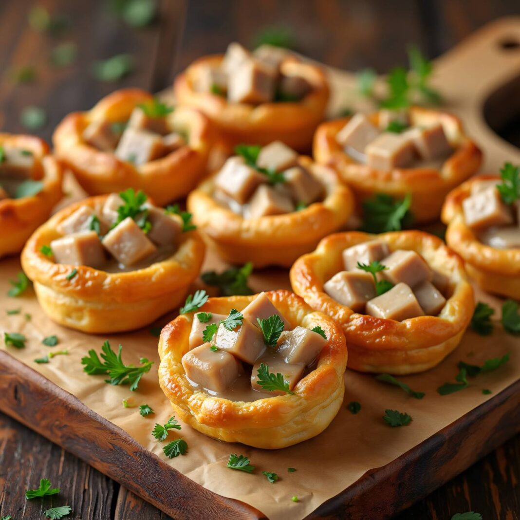Eine köstliche Blätterteig-Pastete gefüllt mit zartem Kalbfleisch und einer cremigen Sauce.