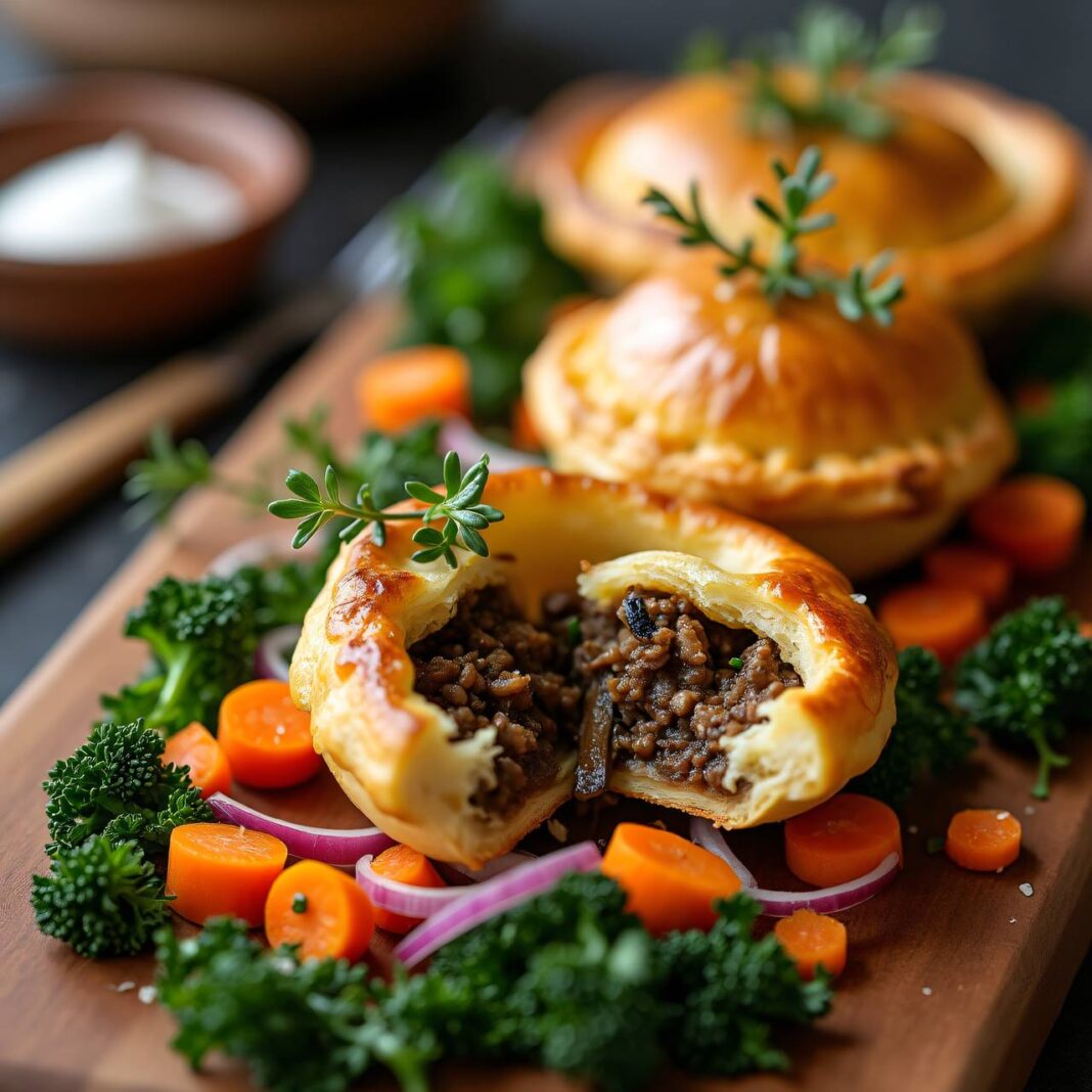 Eine köstliche vegetarische Pastete aus Blätterteig, gefüllt mit Schwarzwurzeln, Morcheln und Gemüse.