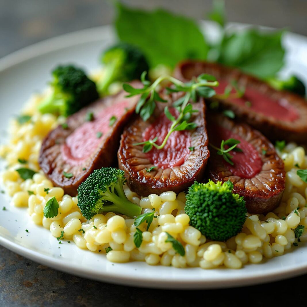 Ein schnelles und schmackhaftes Gericht mit Rindsplätzli und cremigem Risotto, perfekt für ein gemütliches Abendessen.