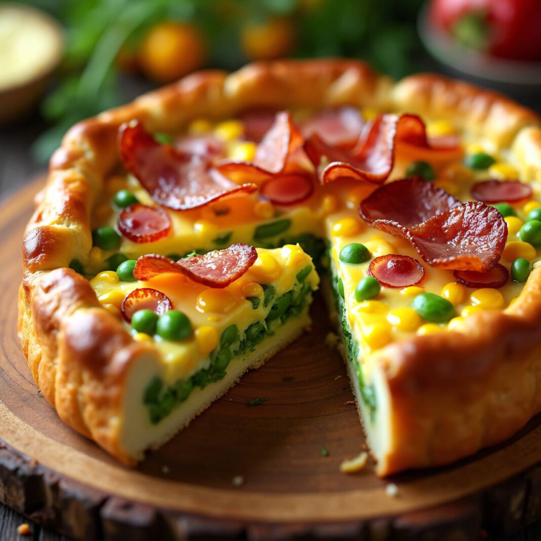 Eine köstliche Quiche mit Buschbohnen, Mais und einem cremigen Guss, perfekt für jeden Anlass.