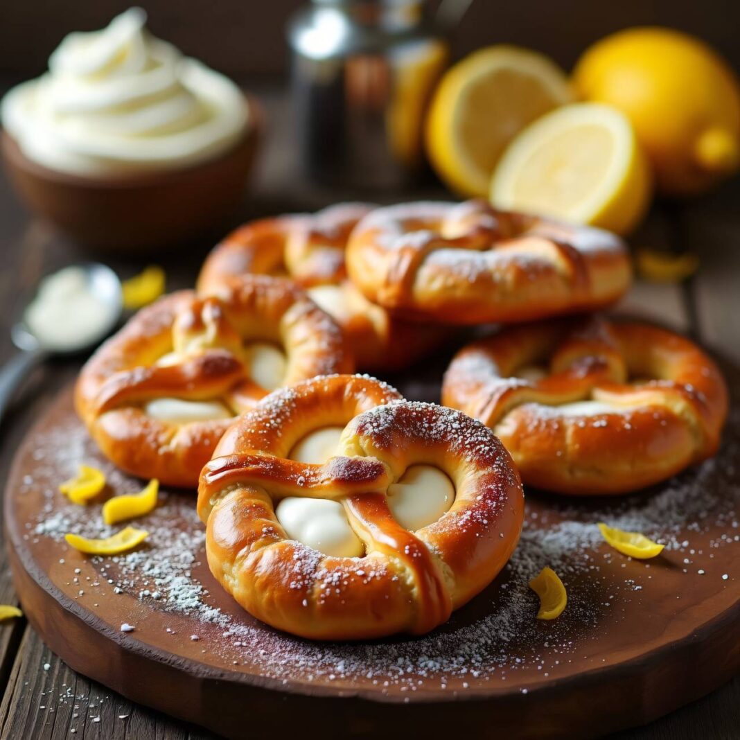 Ein köstliches Rezept für selbstgemachte Brezeln, die warm serviert und mit Schlagobers gefüllt werden.