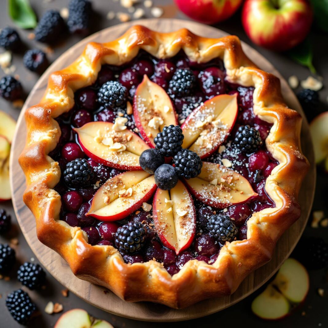 Ein köstlicher Brombeer-Apfel-Pie mit einem knusprigen Teig und einer fruchtigen Füllung aus Äpfeln und Brombeeren.