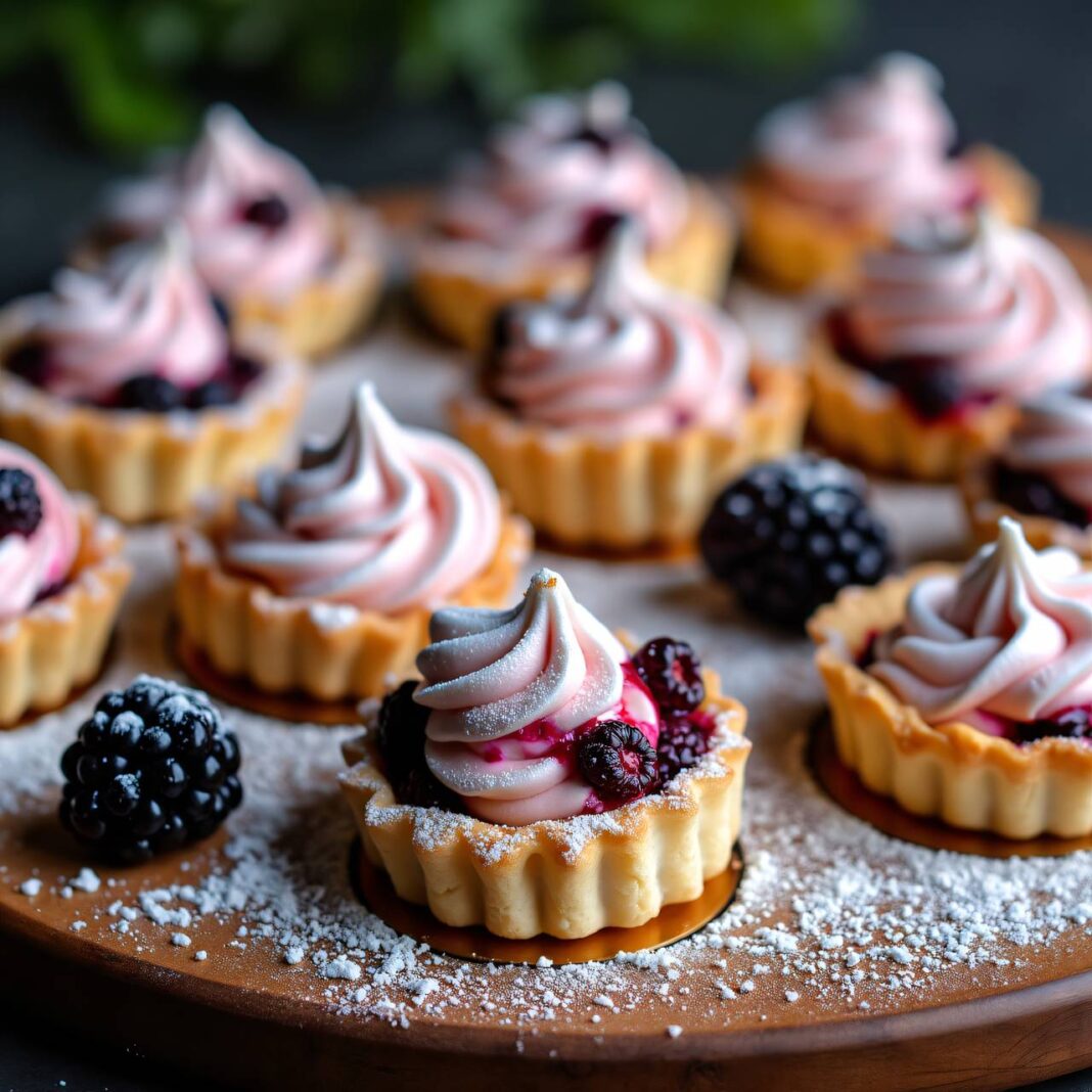 Ein köstliches Törtchen aus Japonais mit einer cremigen Mascarpone-Brombeer-Füllung.