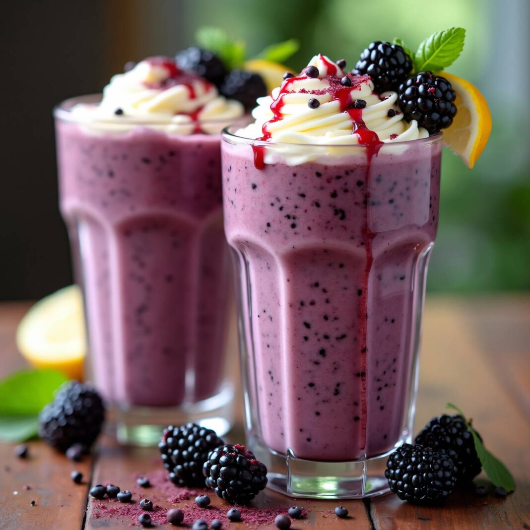 Ein erfrischender Brombeer-Milchshake, perfekt für heiße Tage.