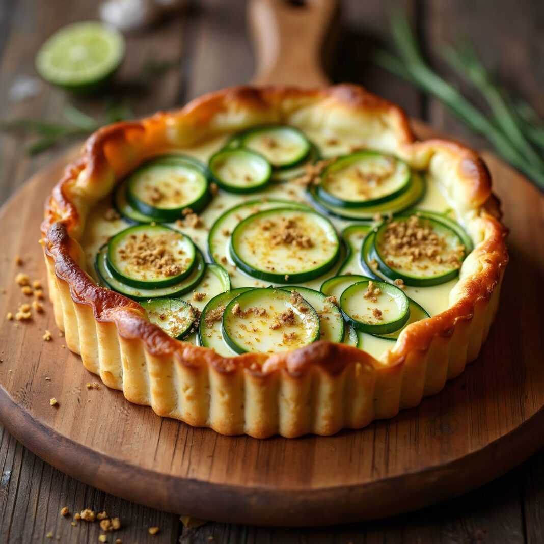 6. Garnieren: Vor dem Servieren die Tarte mit in Streifen geschnittenen Bundzwiebeln garnieren.