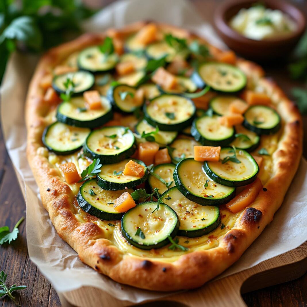 Ein köstlicher Fladen mit Burenwürsten, Zucchini und einer cremigen Crème fraîche-Beläge.