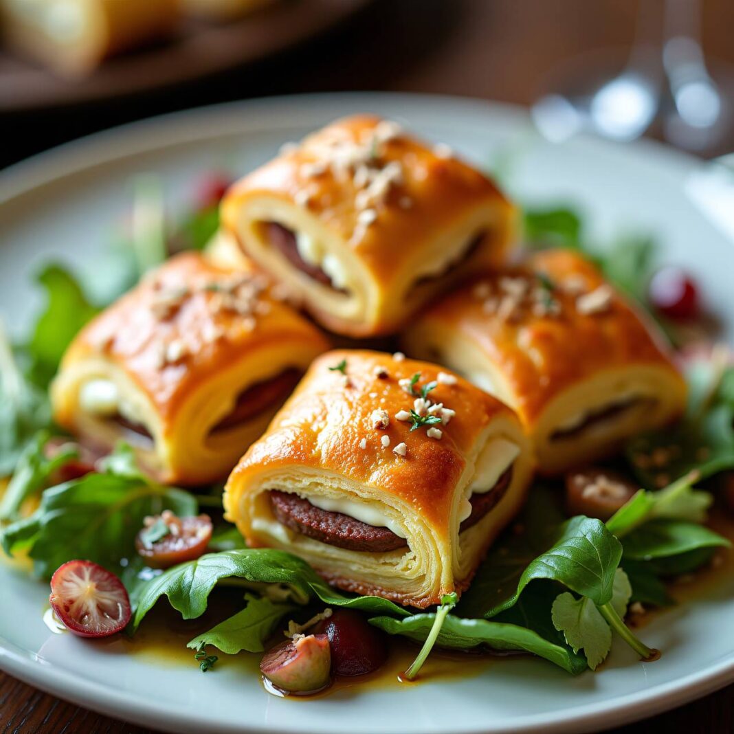 Ein köstliches Rezept für knusprige Burenwurst-Kissen auf frischem Blattsalat mit einer leckeren Salatsauce.