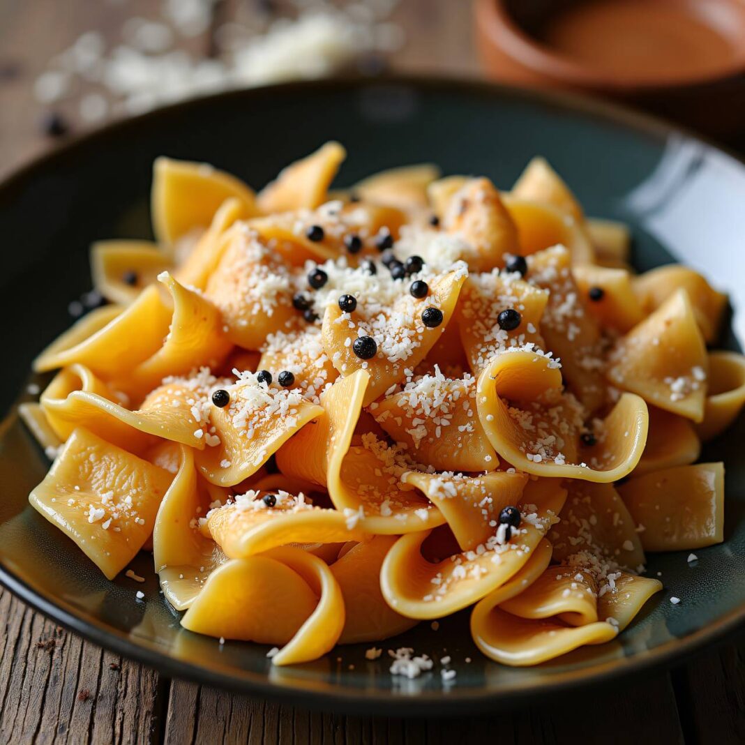 Eine cremige Pasta mit karamellisierten Zwiebeln, perfekt für ein herzhaftes Abendessen.