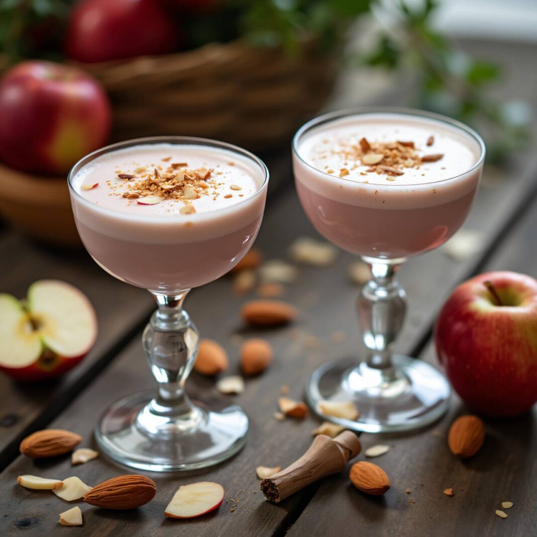 Ein erfrischendes Getränk aus Milch, Apfel und Cassismarmelade, perfekt für heiße Tage.