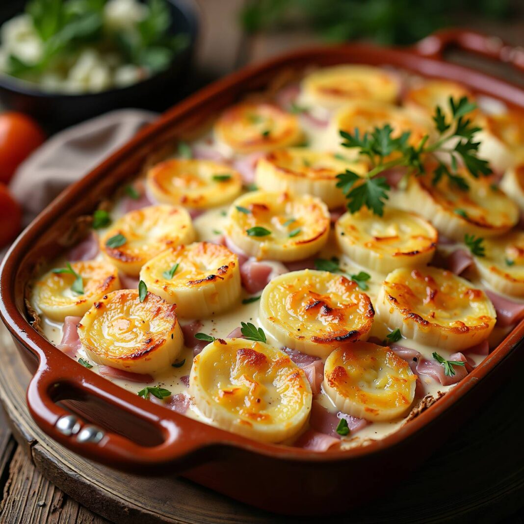 Ein köstliches Chicorée-Gratin, verfeinert mit Schinken und Gruyère, ideal für ein herzhaftes Abendessen.