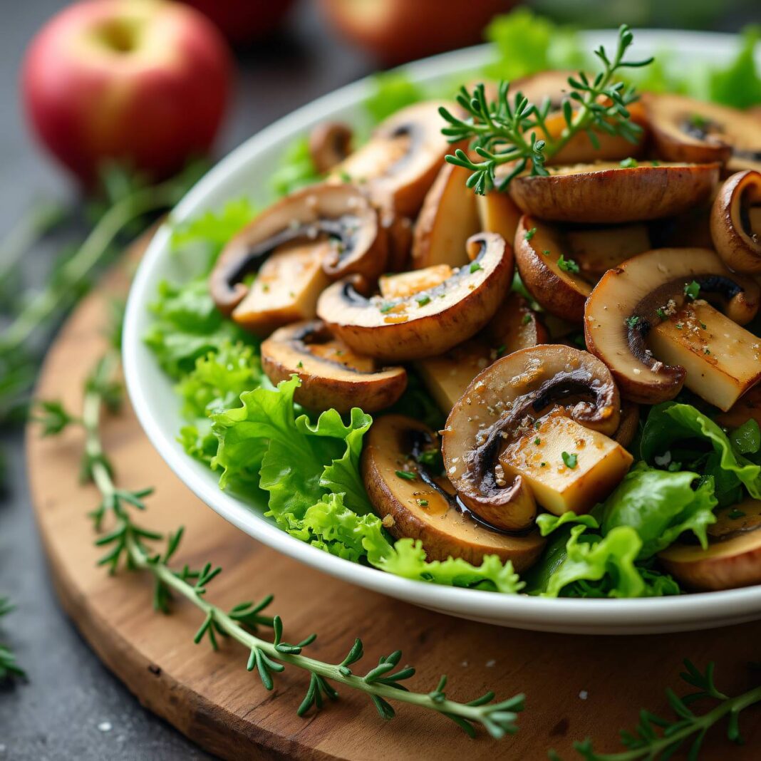 Ein erfrischender Chinakohlsalat mit aromatischen Thymian-Pilzen, perfekt als Beilage oder leichtes Hauptgericht.