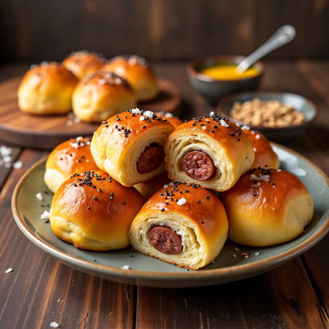 Leckere Cipollata-Bonbons aus Hefeteig, gefüllt mit würzigen Cipollata und verfeinert mit Senf.
