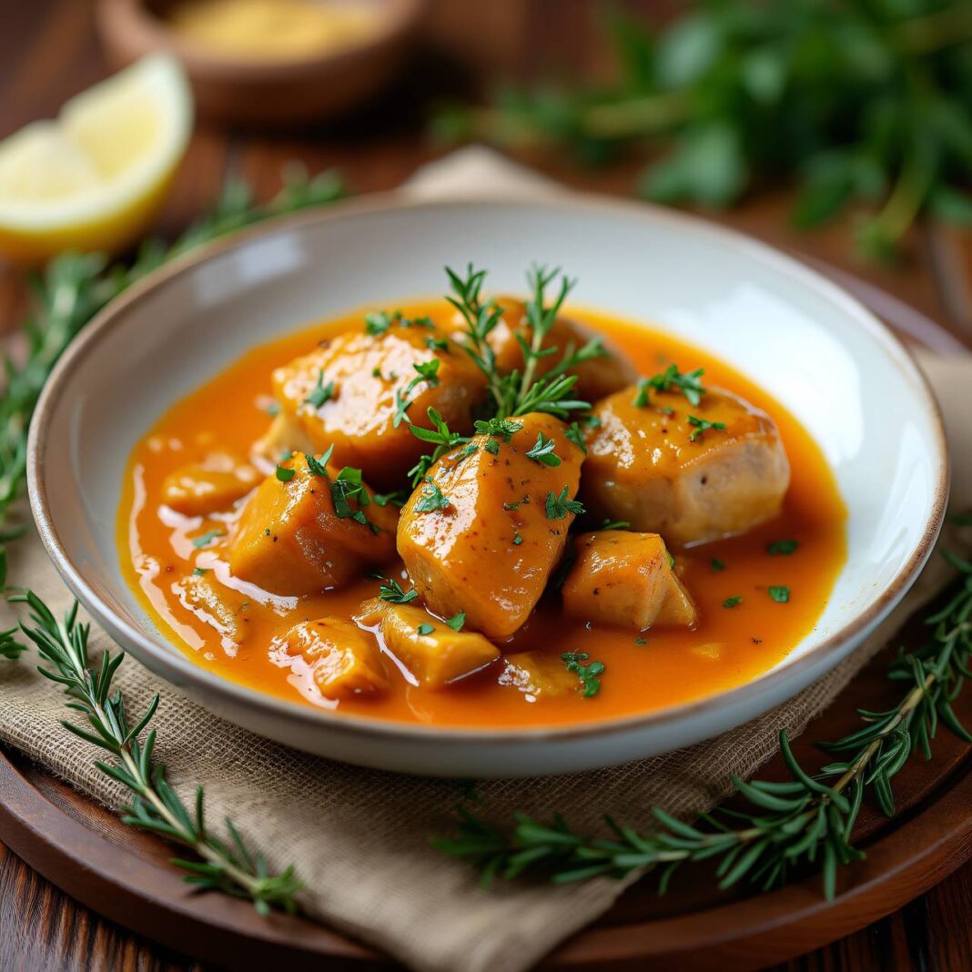 Ein köstliches Kaninchenragout in einer cremigen Sauce, perfekt für besondere Anlässe.