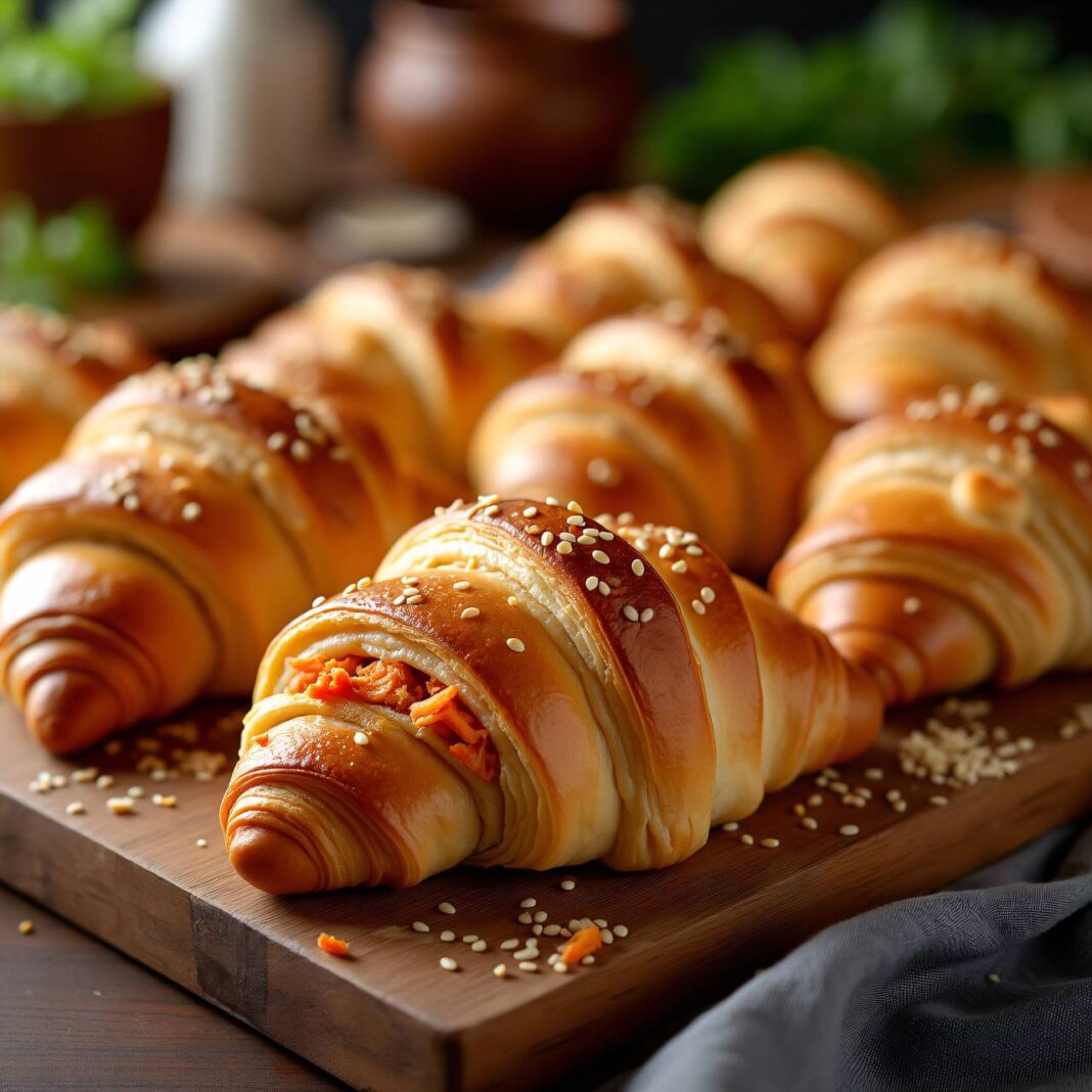 Leckere Kipferln gefüllt mit einer würzigen Curry-Hühnchen-Füllung.