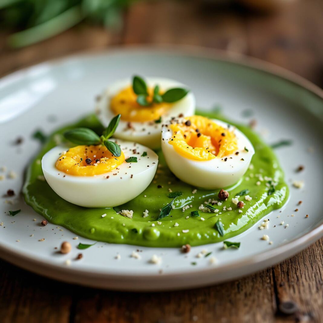 Ein köstliches Rezept für Eier auf einer cremigen Bärlauchsauce, ideal als leichtes Gericht.
