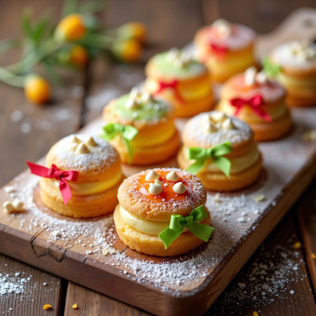 Ein köstliches Rezept für Biskuit-Eier gefüllt mit einer cremigen Füllung aus Butter und Eierlikör, umhüllt mit farbigem Marzipan.