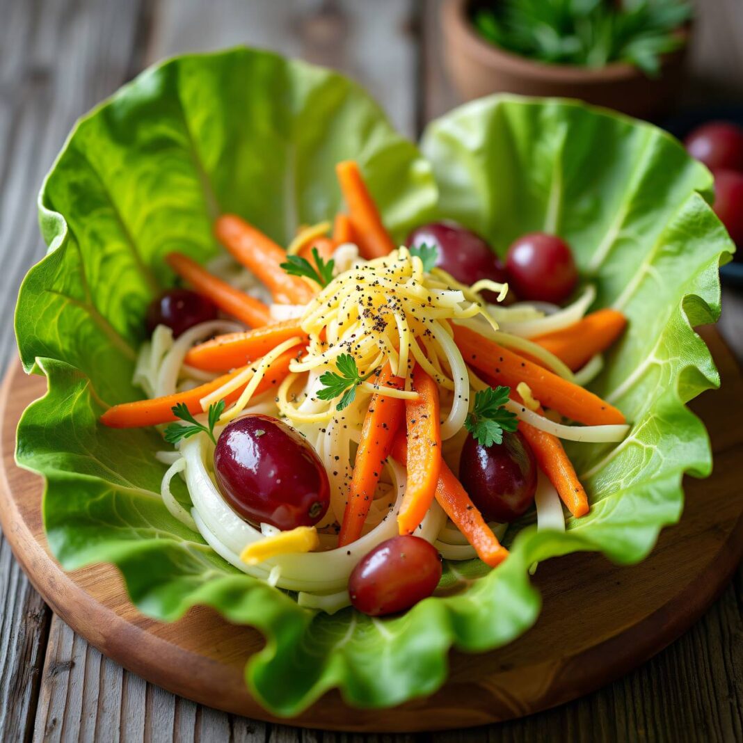 Ein erfrischender Fenchelsalat mit Karotten, Trauben und Hartkäse, perfekt für leichte Mahlzeiten.
