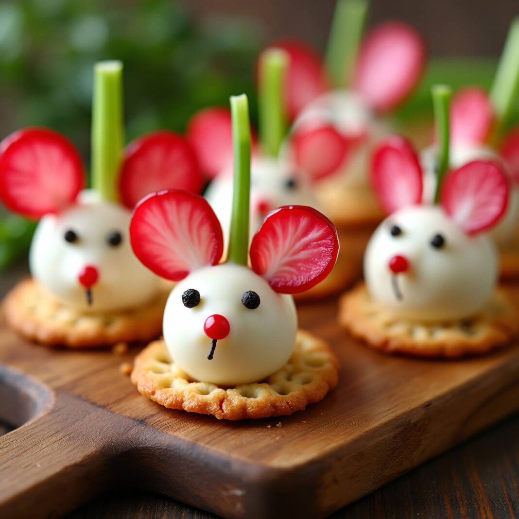 Diese Schritte wiederholst du, bis alle Zutaten aufgebraucht sind. Die Fingerfood-Mäuse sind nun bereit zum Servieren.