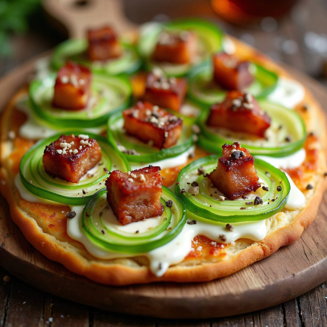 Ein köstlicher Flammkuchen mit feinem Fenchel und herzhaftem Speck, perfekt für einen gemütlichen Abend.