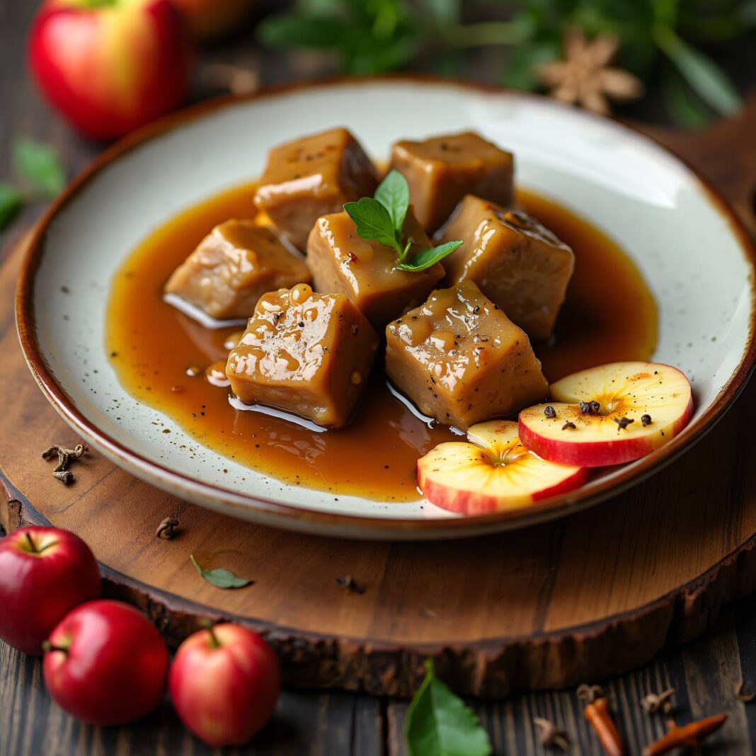 Ein herzhaftes Fleischragout, verfeinert mit einer fruchtigen Apfelsauce und aromatischen Gewürzen.