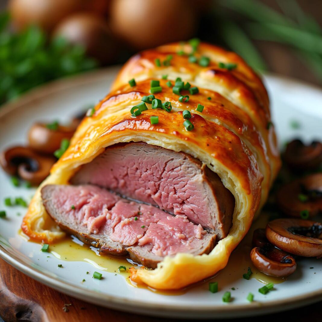 Ein köstliches Rezept für saftige Schweinssteaks, umhüllt von knusprigem Butter-Blätterteig.