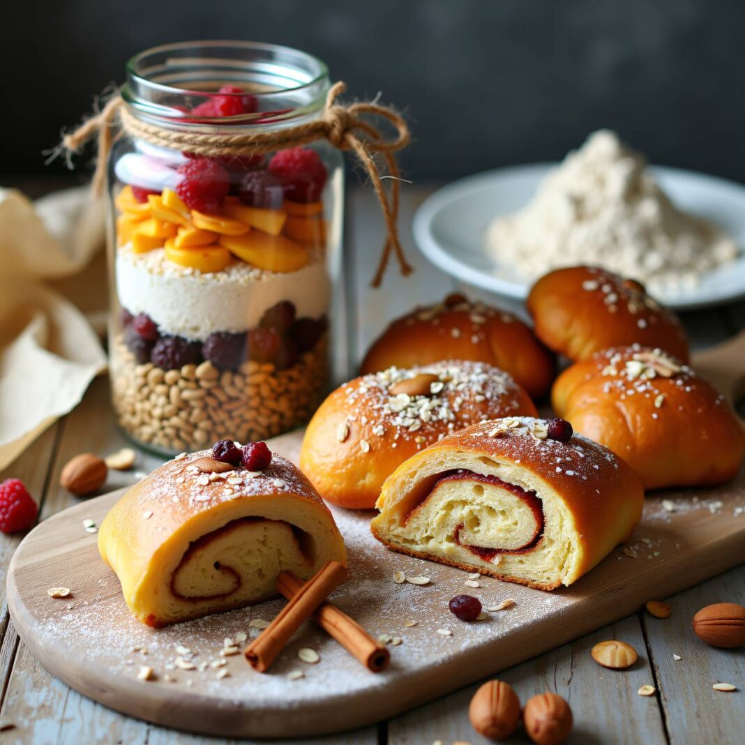 Ein einfaches Rezept für Früchtebrötchen, die als Backmischung im Glas zubereitet werden. Ideal zum Verschenken oder für die eigene Kuchentheke.