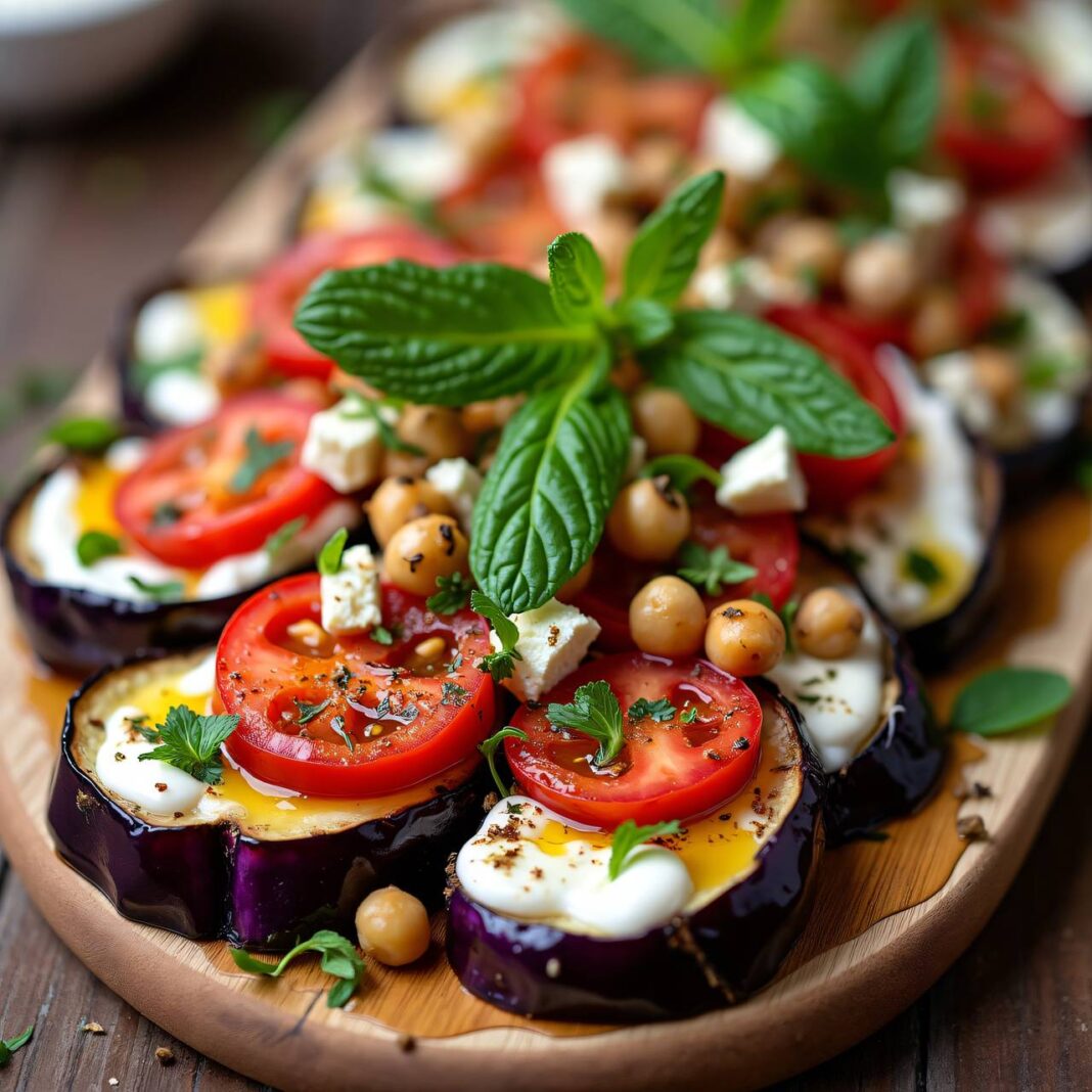 Ein köstliches Rezept für gebackene Auberginen, gefüllt mit Feta und serviert mit einer frischen Joghurtsauce.