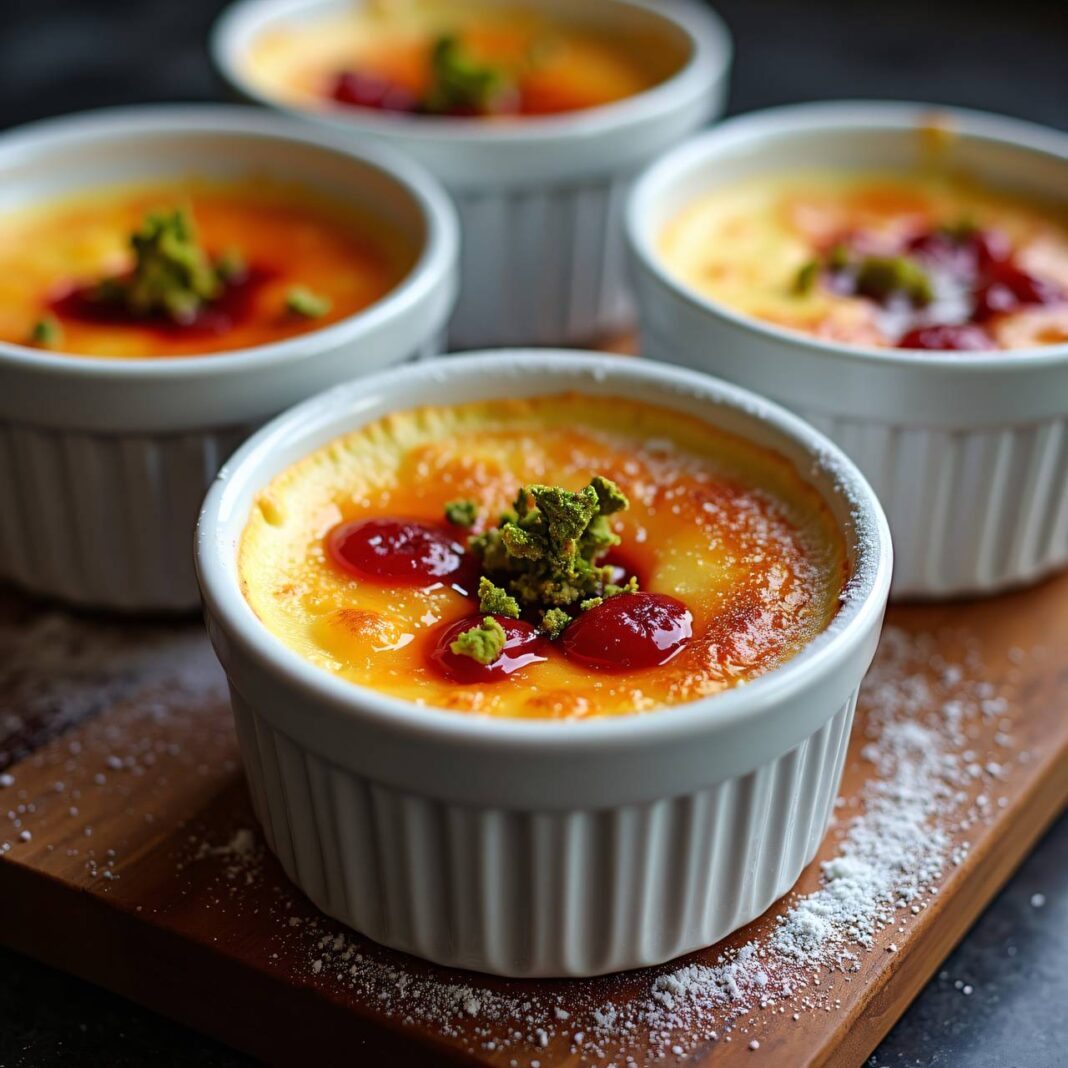 Backen: Backe die Flans in der Mitte des vorgeheizten Backrohrs für 25-30 Minuten, bis sie goldbraun sind.