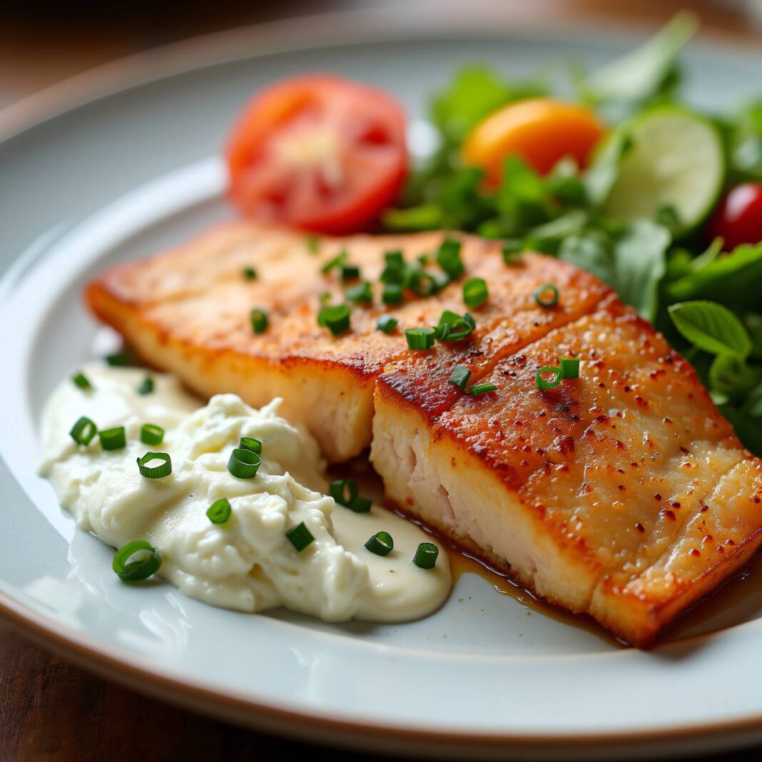 Ein köstliches Rezept für gebratene Forellenfilets, serviert mit einem cremigen Meerrettich-Hüttenkäse.