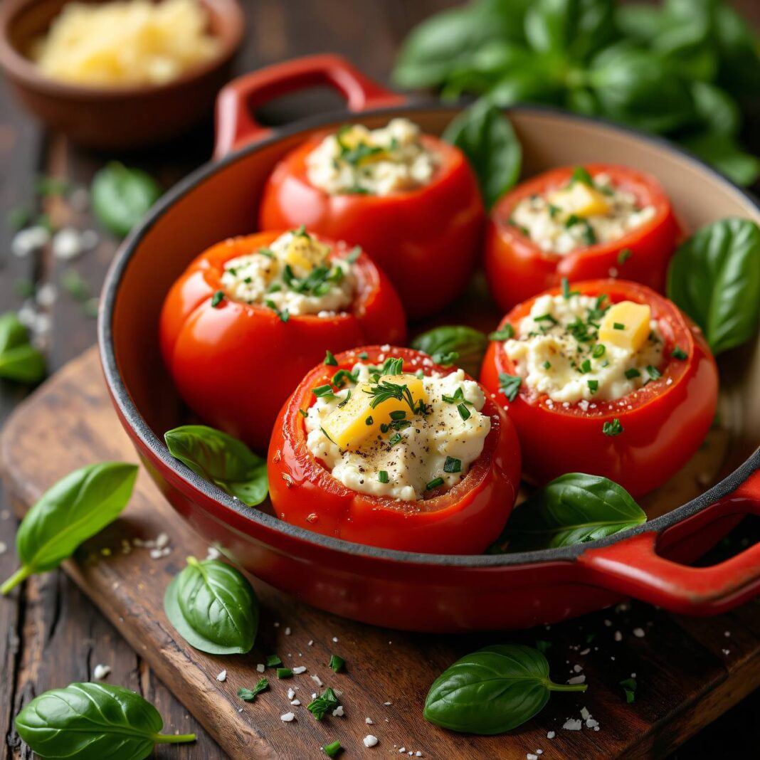 Leckere gefüllte Tomaten mit Ricotta und einer Mischung aus frischen Kräutern, perfekt als Hauptgericht oder Beilage.