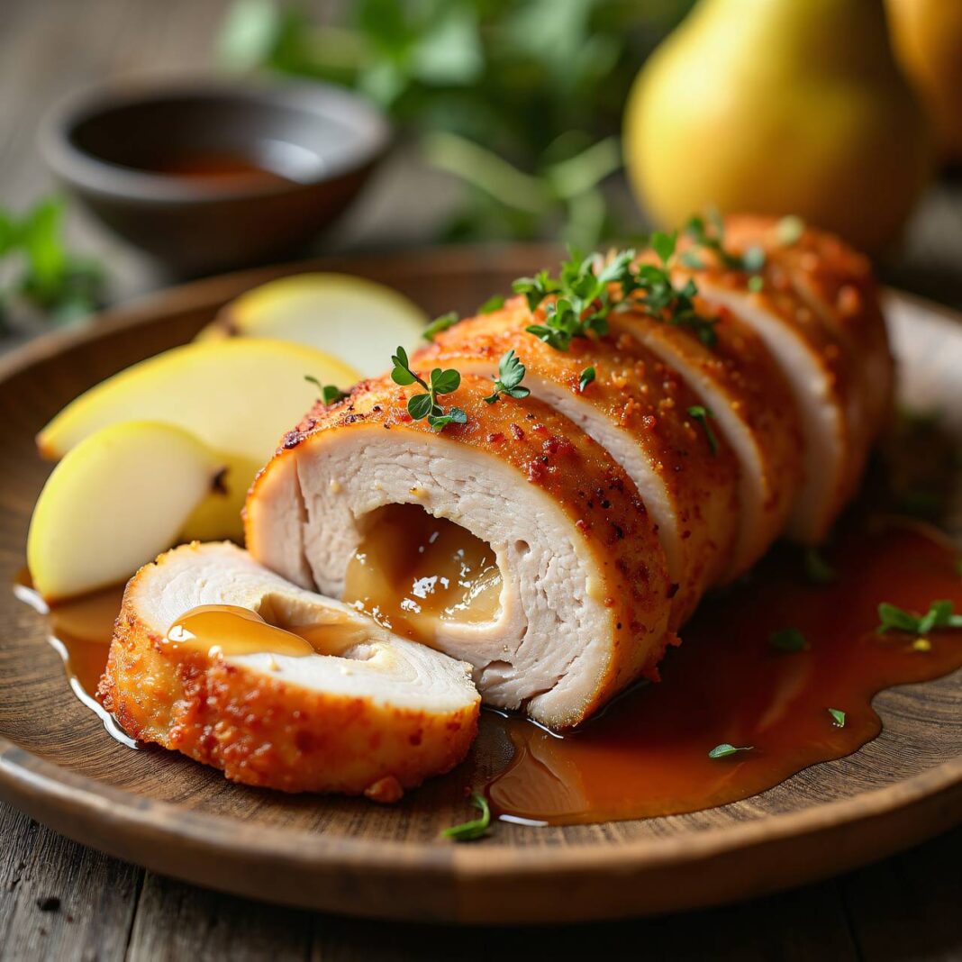 Ein köstliches Rezept für gefülltes Schweinskarree, serviert mit einer aromatischen Birnen-Nelken-Sauce.