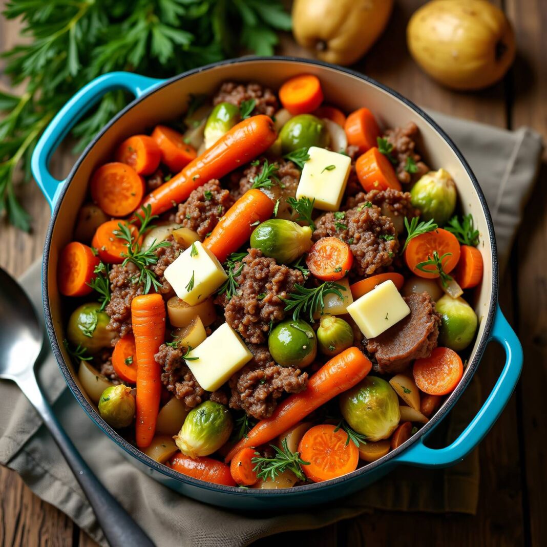 Ein herzhaftes Gemüse-Ragout, perfekt zubereitet im Römertopf für zartes Fleisch und aromatisches Gemüse.