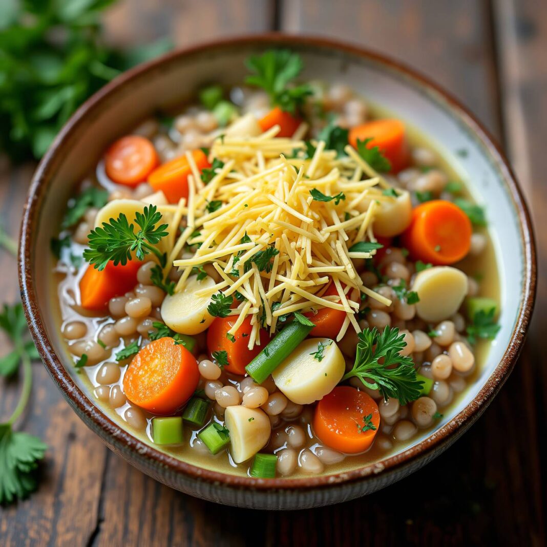Ein köstliches und nahrhaftes Rezept aus Rollgerste und frischem Gemüse, ideal für eine gesunde Mahlzeit.