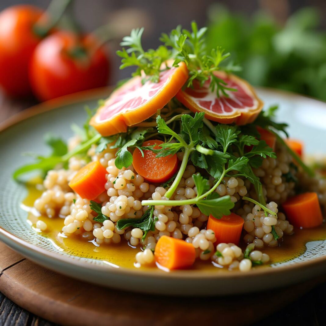 Ein frischer und nahrhafter Gersten-Salat mit Gemüse und einer leckeren Sauce.