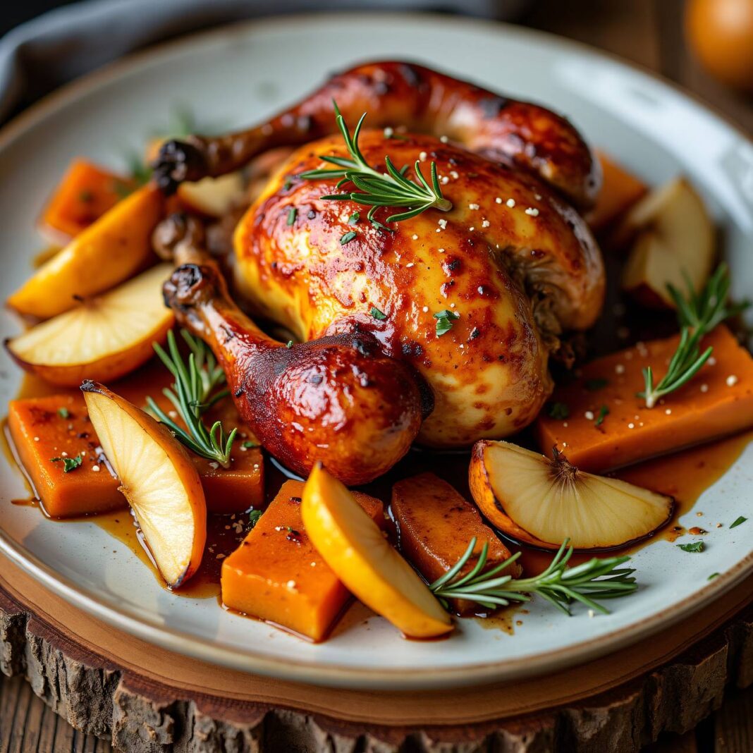 Ein köstliches Rezept für glasiertes Birnen-Curry-Hühnchen, perfekt für ein festliches Abendessen.