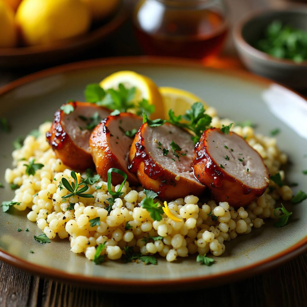 Ein köstliches Rezept für glasiertes Schweinefilet, serviert auf einem aromatischen Kräuter-Couscous.