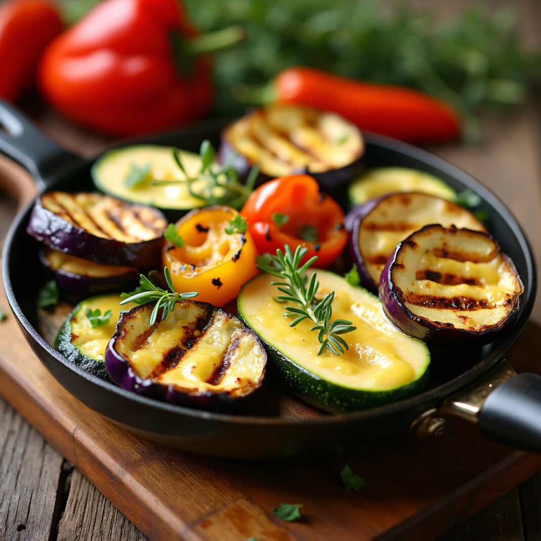 Ein köstliches Rezept für Grillgemüse, überbacken mit schmelzendem Raclettekäse.