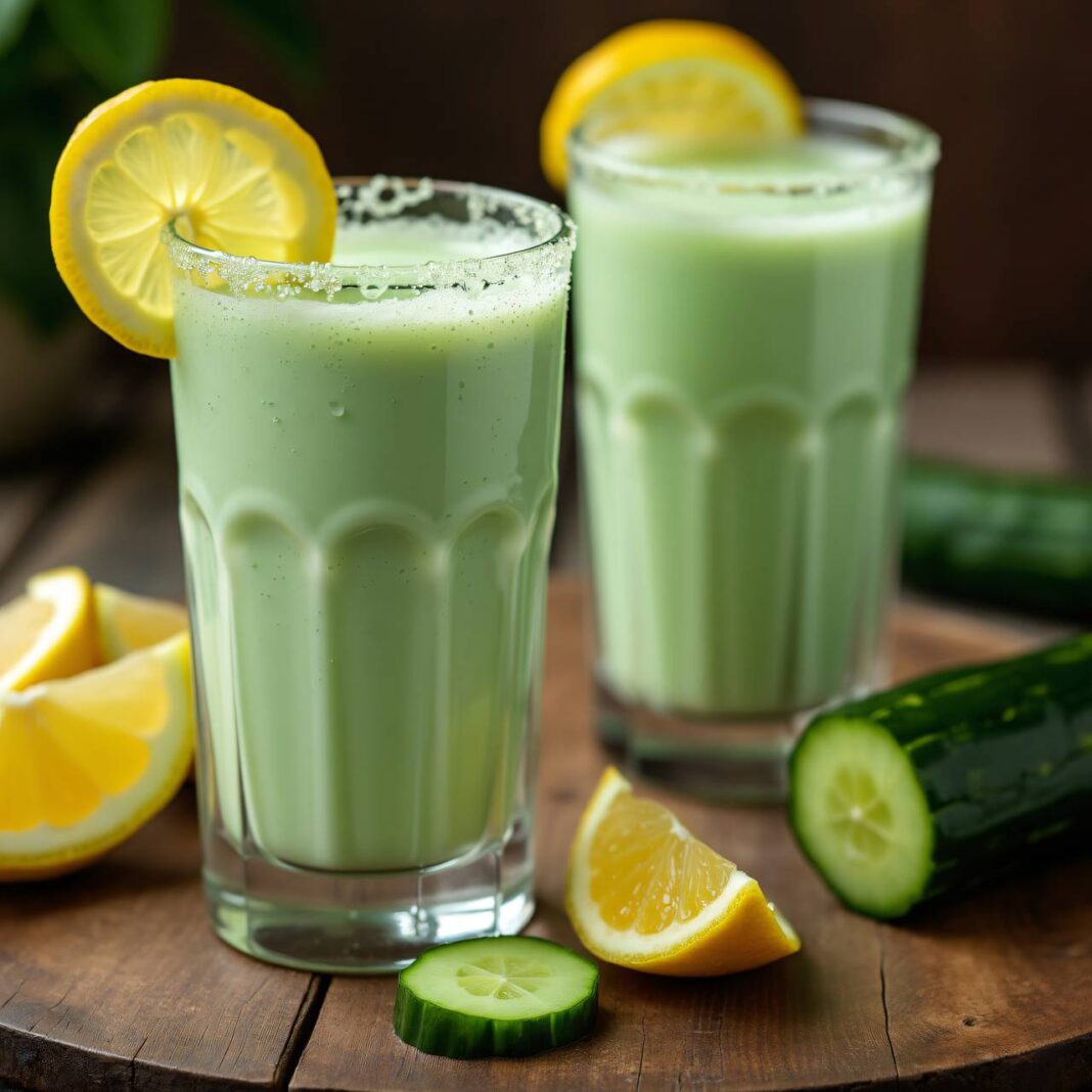 Ein erfrischender Gurken-Zitronen-Shake, perfekt für heiße Tage.