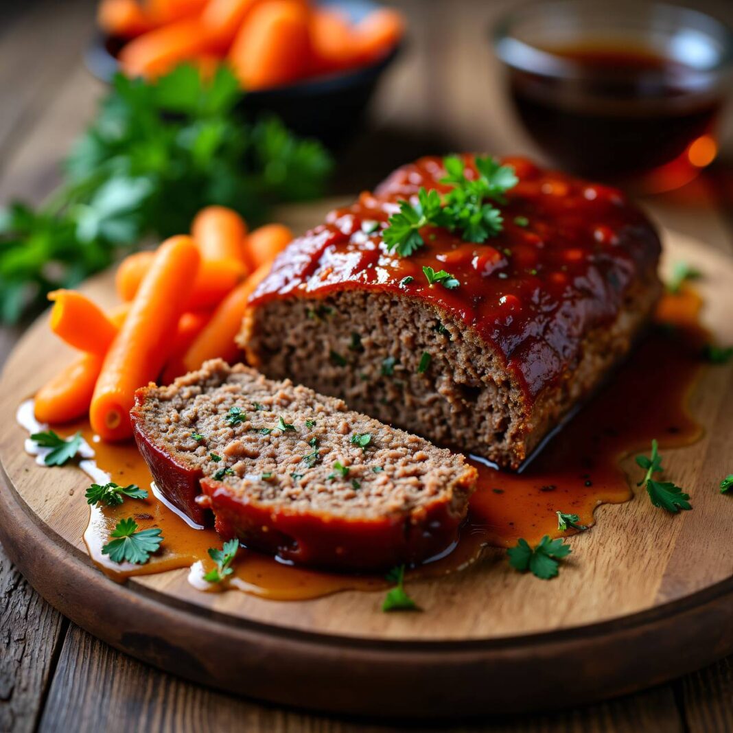 Servieren: Den Hackbraten in Scheiben schneiden und zusammen mit der Sauce und den Karotten servieren.