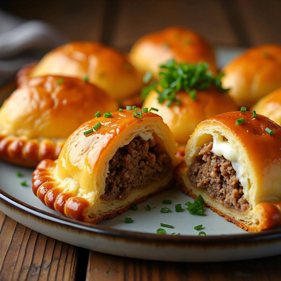Leckere Kipferln gefüllt mit einer herzhaften Hackfleisch-Kräuter-Mischung.