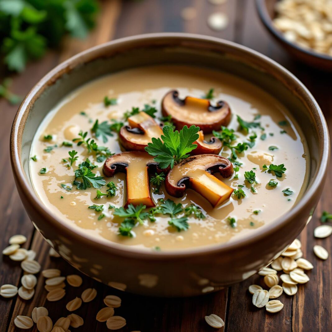 Eine köstliche und cremige Suppe aus Haferkernen und Champignons, perfekt für kalte Tage.