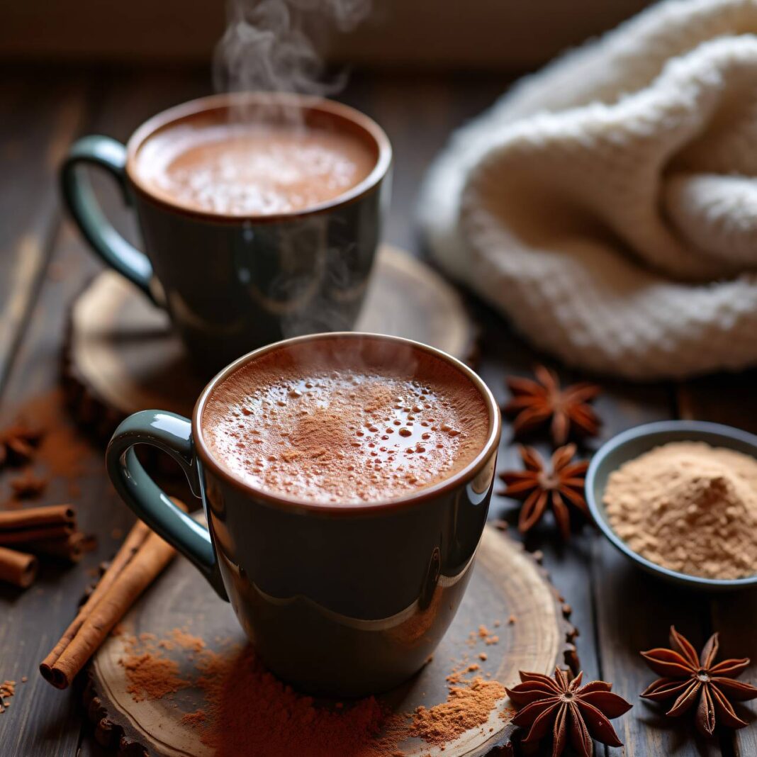 Eine aromatische heiße Schokolade mit einer Mischung aus Gewürzen, perfekt für kalte Tage.