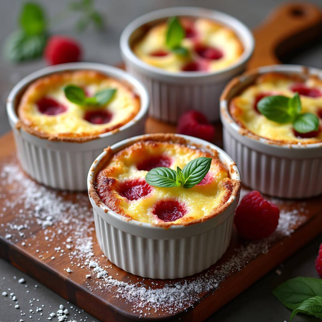 Servieren: Die Gratins aus dem Rohr nehmen, mit Staubzucker bestäuben und mit Zitronenmelisse garnieren. Sofort servieren.