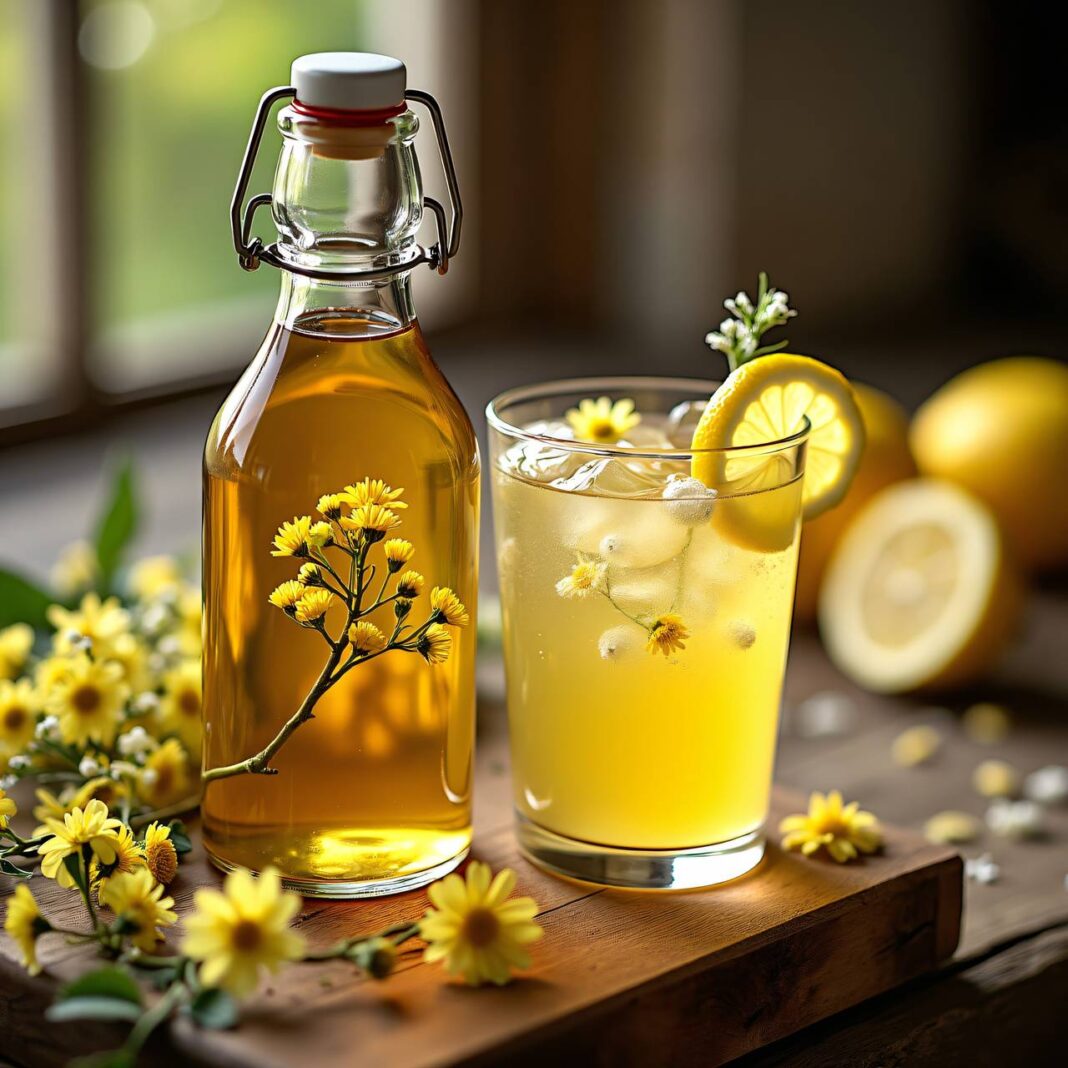 Ein erfrischender Holunderblütensirup, ideal zum Mischen mit Wasser und für die warme Jahreszeit.